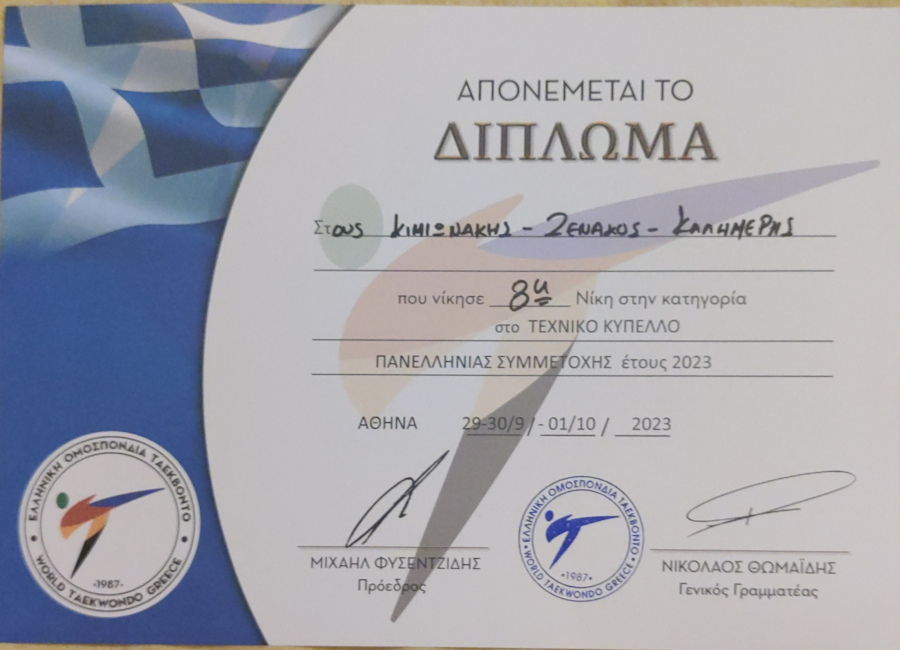 Επιτυχία μαθήτή του σχολείου μας! (TAE KBO NTO) Οκτώβριος 20, 2023/σε Δραστηριότητες, Νέα & Ανακοινώσεις /από 3ο Γυμνάσιο Αγίας ΠαρασκευήςΣυγχαίρουμε τον μαθητή του σχολείου μας ΚΑΛΗΜΕΡΗ ΣΤΑΜΑΤΗ της Α΄ τάξης, ο οποίος κατέλαβε την 3η θέση στο Τεχνικό Κύπελο Πανελλήνιας Συμμετοχής στο ΤΑΕ ΚΒΟ ΝΤΟ! Στον μαθητή μας ευχόμαστε ΠΑΝΤΑ ΝΙΚΕΣ!