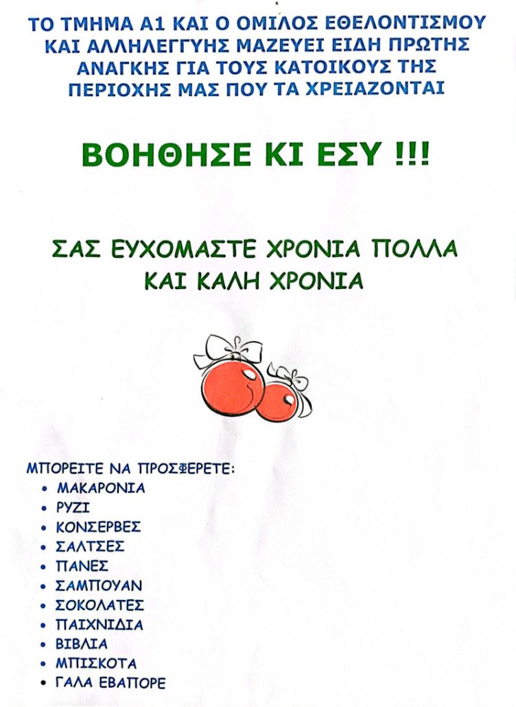 Δράση Εθελοντισμού Δεκέμβριος 9, 2023/σε Δράσεις & Όμιλοι, Δραστηριότητες, Νέα & Ανακοινώσεις /από 3ο Γυμνάσιο Αγίας Παρασκευής