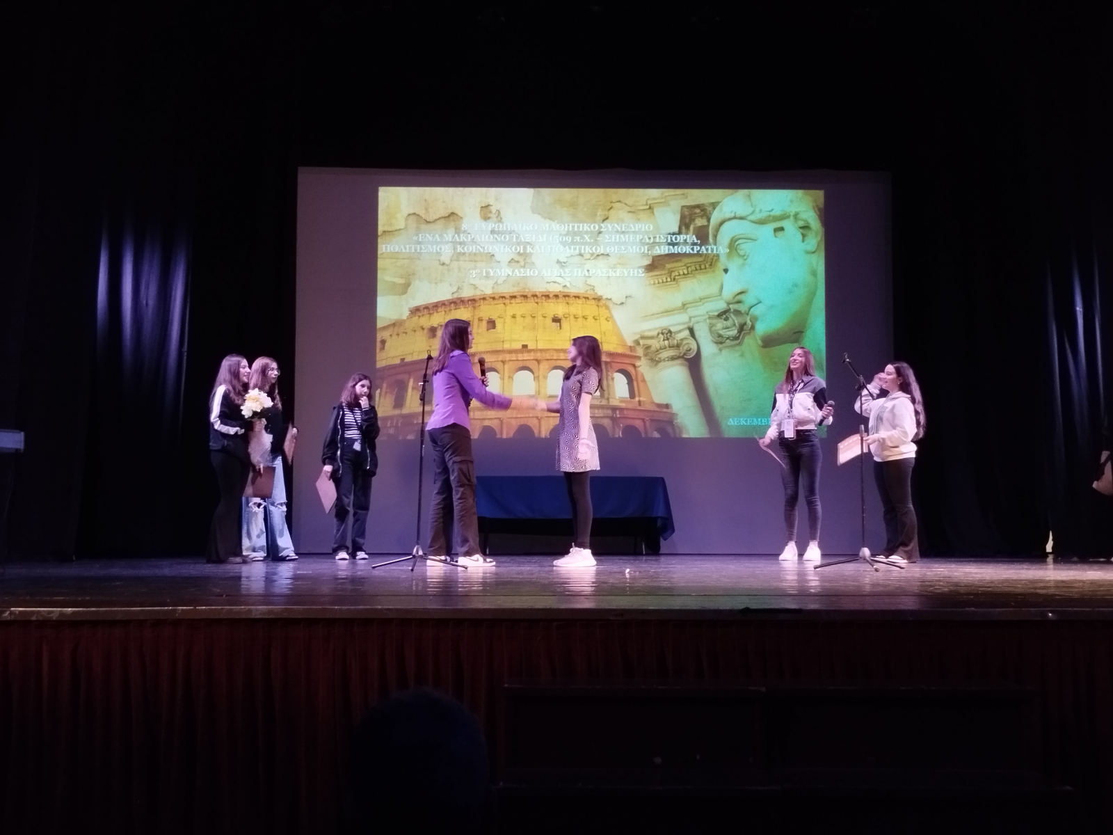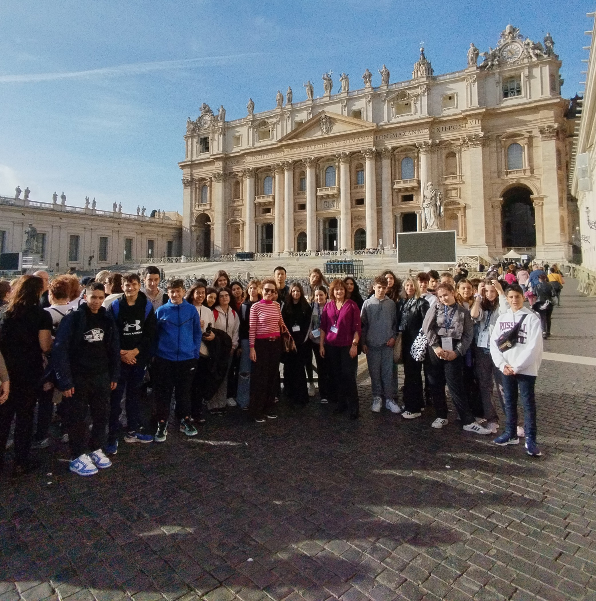 Ομάδα 26 μαθητών/τριών του σχολείου μας συμμετείχε με ιδιαίτερη επιτυχία στο 8 ο Ευρωπαϊκό Μαθητικό Συνέδριο στη Ρώμη 29/11-2/12/2023 με παρουσίαση- δρώμενο με τίτλο: «Τα ρωμαϊκά οικοδομήματα στην Αθήνα». Επίσης, οι μαθητές/τριες περιηγήθηκαν και ξεναγήθηκαν στα εμβληματικά αξιοθέατα της Αιώνιας Πόλης, στις μεσαιωνικές πόλεις Σιένα και Ορβιέτο και στο Βατικανό.