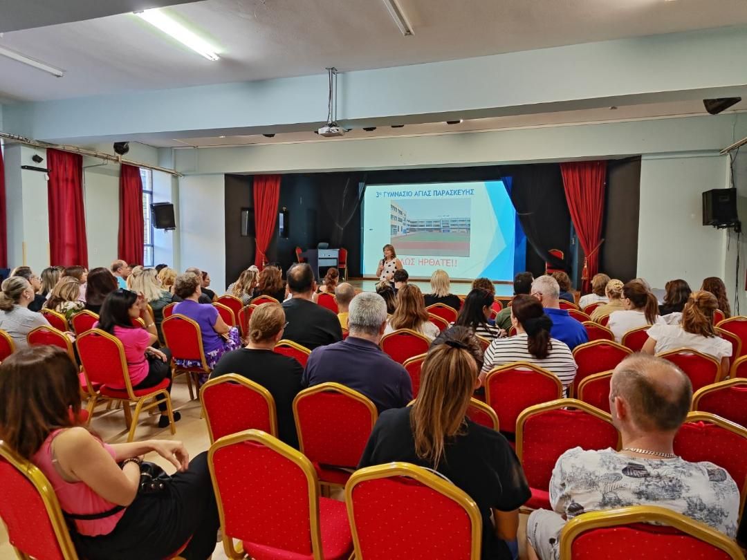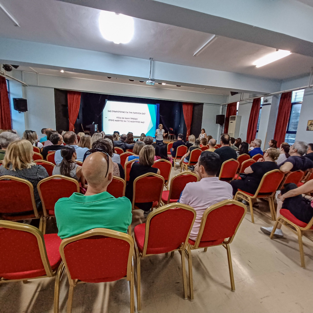 Την Τετάρτη 9 Οκτωβρίου 2024 στις 18.00 στην Αίθουσα Εκδηλώσεων του σχολείου μας πραγματοποιήθηκε η πρώτη συνάντηση με τους Γονείς της Α΄ τάξης. Οι Εκπαιδευτικοί ενημέρωσαν τους Γονείς για τη Φιλοσοφία και τον Εσωτερικό Κανονισμό Λειτουργίας του σχολείου μας και ακολούθησε συζήτηση για το διδακτικό και παιδαγωγικό ρόλο της εκπαίδευσης.